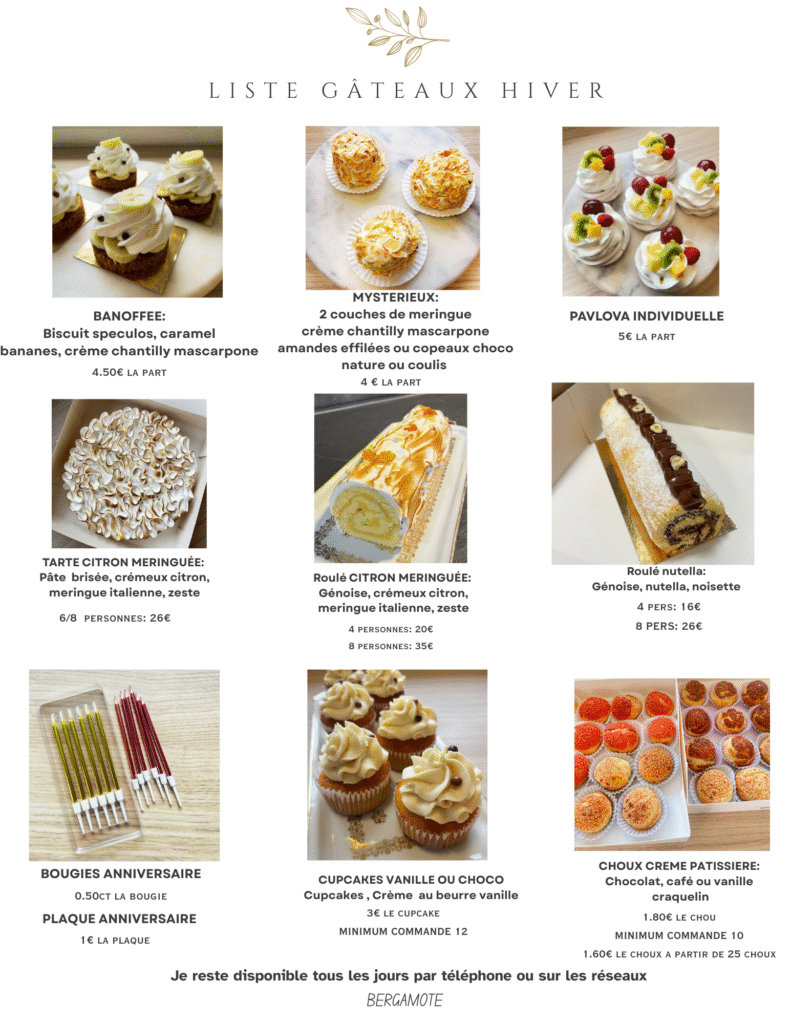 Bergamote vous propose des pâtisseries faites maison préparées avec amour, passion… et des ingrédients de qualité.
