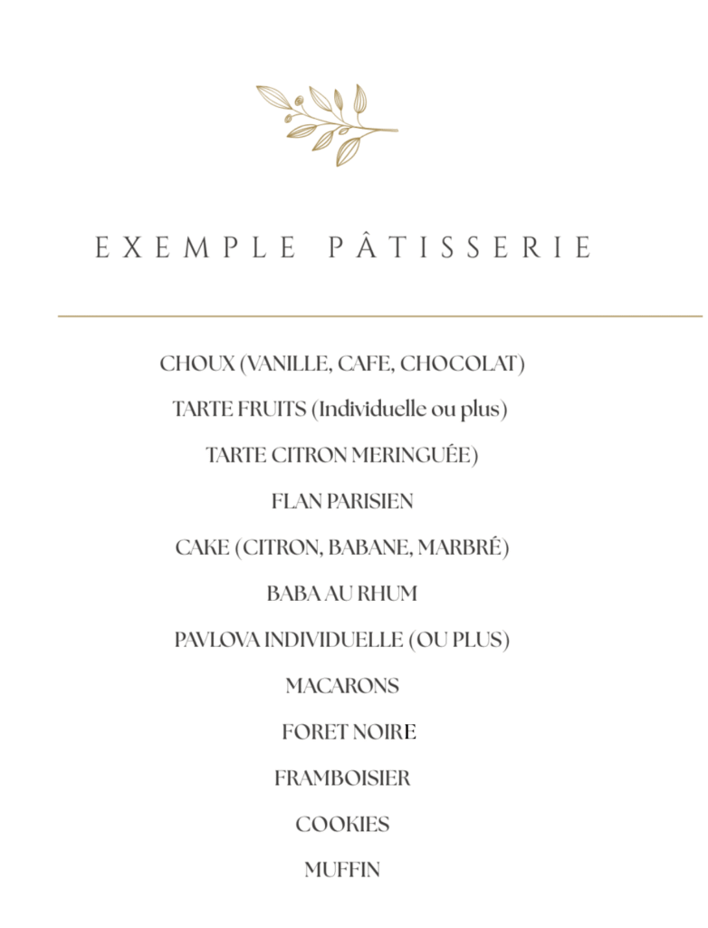 Tarte citron, Paris-Brest, pavlova, fraisier, macarons, choux, cookies… dites-moi ce que vous aimez, je m’occupe du reste !